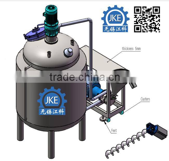 Wuxi JKE New In-line powder into Liquid Mixer is suitable to in-line production or recycling processing of highly flowability liquid materials, fulfilling the shearing, dispersion, homogenizing and mixing, emulsion process requirements of liquid-liquid phase and liquid-solid phase materials.