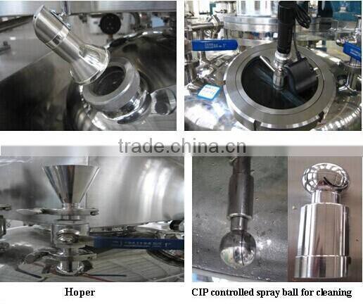 Kettle Cover | Liquid(particle)inlet, sunk material inlet, air inlet with filter, inspect light and sight glass, vacuum port, pressure meter(1 to -0.1 bar), pressure clamp | |||