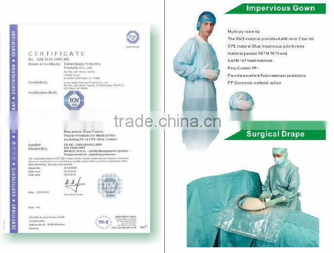 Hubei Haixin Protective Products Group Co.,Ltd (HH) founded in 1994 ,is a leading manufacturer & exporter specialized in all kinds of medical non woven disposable products and personal protective equipment.Our factory is covering a land of 30000 square meters , with more than 1000 skilled workers .Hubei Haixin has been distinguished with approved and certifications such as CE , FDA(510K), ISO9001:2000, ISO13485:2003