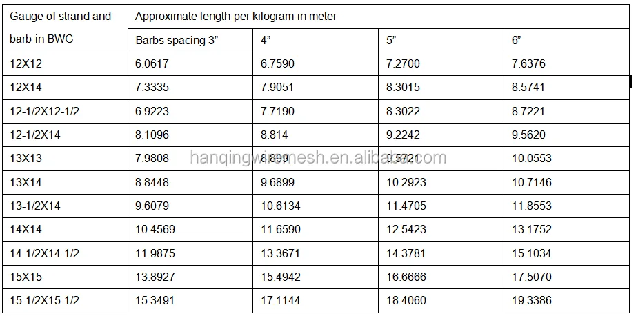 Barbed Wire Mesh Length per kg in Meter