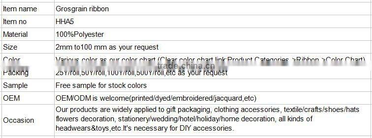 If you are interested in this Grosgrain ribbon,please tell me the Item No. when you make an inquiry,so that we could give you a prompt and effective reply.