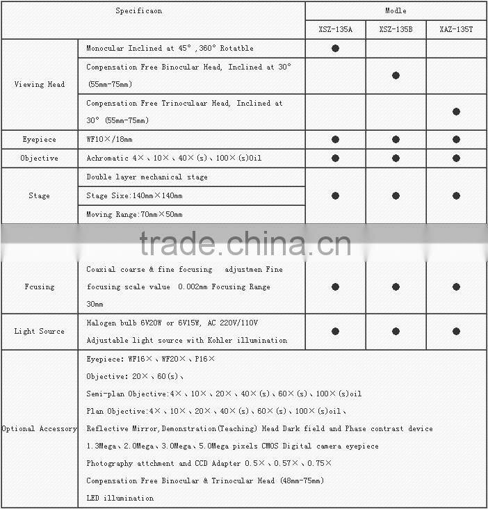 Original Manufacturer XSZ-135A,135B,135T 1000x Compensation Free Binocular Head Biological Microscope