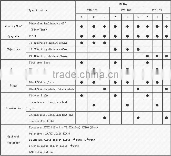 | Model Number | XTD-101,102,103 | Theory | Stereo Microscope | |