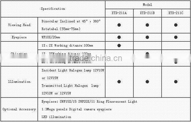 XTD-211 Halogen Binocular Stereo Microscope