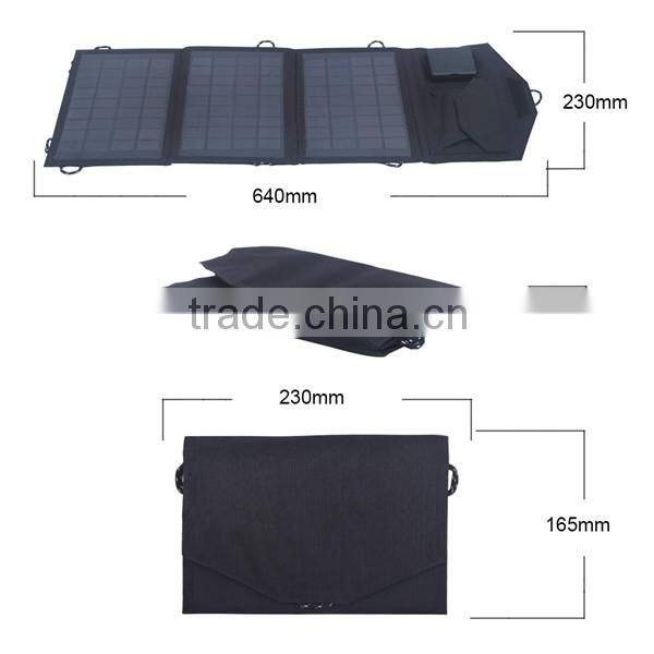 This product is a multifunctional solar charger, with dual output(5V&9V~18V) which can charge for 18V products, 12V battery and 5V Iphone/Ipad, PDA, MP3, MP4, digital camera, video camera, PSP video games, iPhone,Blackberry , blue-tooth headset, IPOD etc at one time.