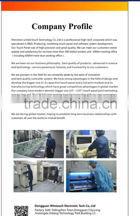 Shenzhen WinTouch Electronic Tech. Co.,LTD was established in 1999, is an intergrating development and production together touch screen electronic hi-tech company, specialize in manufacturing touch screen panel, touch screen monitor,touch screen kiosk, interactive digital signage,touch screen all in one and touch screen tablet.