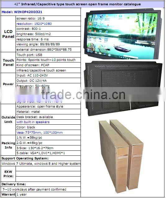 Cheap and Good 42 Inch Full HD 1920*1080 Open Frame Lcd Monitor Touch Screen, Touch Monitor With Network