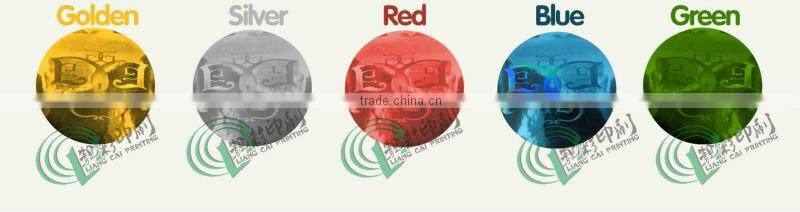 | Type | There are two kinds of hologram labels on usage,one is permanent(can't be damaged),another is easily damaged,only can be used for once,while someone want to remove it off,it will be damaged and left some gold or silver matter on product. |