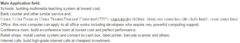 Description: This mini computer highlights its smart design and high performance. Design only 198*198*20mm mini size, can run 3D games and 1080P HD resolution vedio playing perfectly. Highly suggest using this mini computer to build home theater system. SSD can make the computer run fast and HDD can help get mass capacity at low cost, make SSD+HDD together inside the computer can maximize the performance of the computer.
