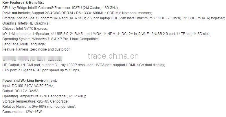 Best Desktop Computer Intel Celeron 1037U HTPC 1.8G Dual-core Four Threads 2M Cache1080P HTPC 4*USB3.0 2*USB2.0 2*LAN