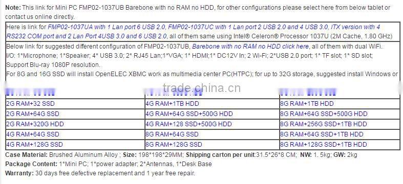 best desktop computer Intel Celeron 1037U HTPC 1.8G Dual-core four threads 2M cache1080P HTPC 4*USB3.0 2*USB2.0 2*LAN