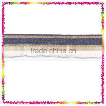Blue Denim Gold Metallic Ivory Cotton Braided Decorative Trim for apparels |