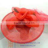 Red Fancy Sinamay Fascinators With Big Feather For Wedding Wholesale T121