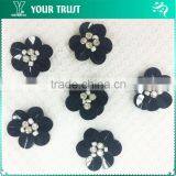 Clear Rhinestone Black Flat Sequin Black Bead Flower Applique Patches