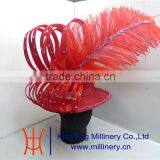 Wholesale Hat Suppliers Red Fancy Church Hat With Big Feather BM-5015 Quality Choice
