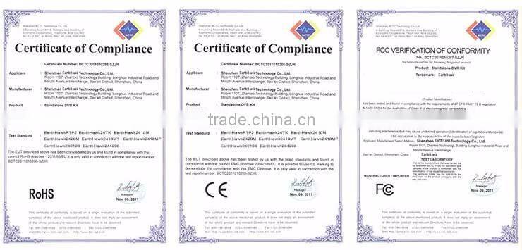 Shenzhen EarthHawk Tech. Co., Ltd. is a professional manufacturer specializing in security products. We take a good advantage on AHD Hybrid DVR, CCTV Cameras and DVR security Kits. We also have a good sales on other security products like NVR, IPC, Wireless NVR Kit and security accessories.