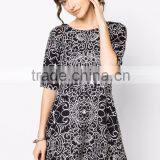 - TWOTWINSTYLE Print Dress For Women O Neck Hollow Out Lantern Sleeve High Waist Mini Elegant