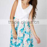 - TWOTWINSTYLE Elegant Off Shoulder Print Dress Women Sleeveless High Waist Hit Color Spring
