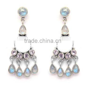 925 Sterling Silver Genuine Amethyst & Rainbow Moonstone Stud Earring Wholesale Jewellery