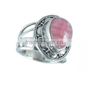925 Sterling Silver Pear Cabochon Pink Rhodocrosite Gemstone Ring Jewelry