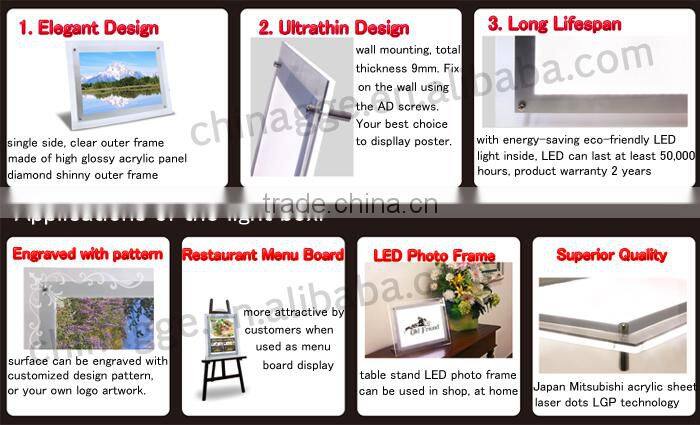 Except for our standard size above, customized size order welcome. Before quoting, pls tell your poster size or frame size of the light box, then we will check and quote to you accordingly~