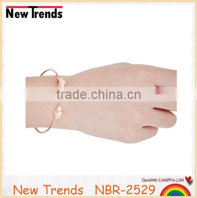 Product | Exaggerated alloy leaf shape bangle open spring cuff |