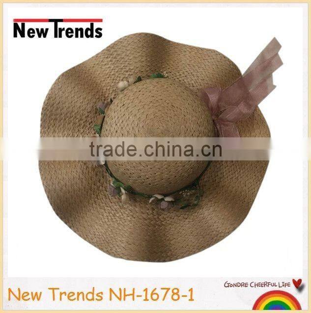 Fashion Brown Color Wide Paper Straw Floopy Waves Hat