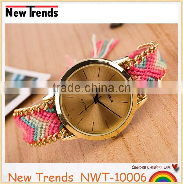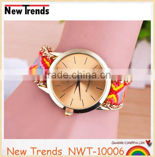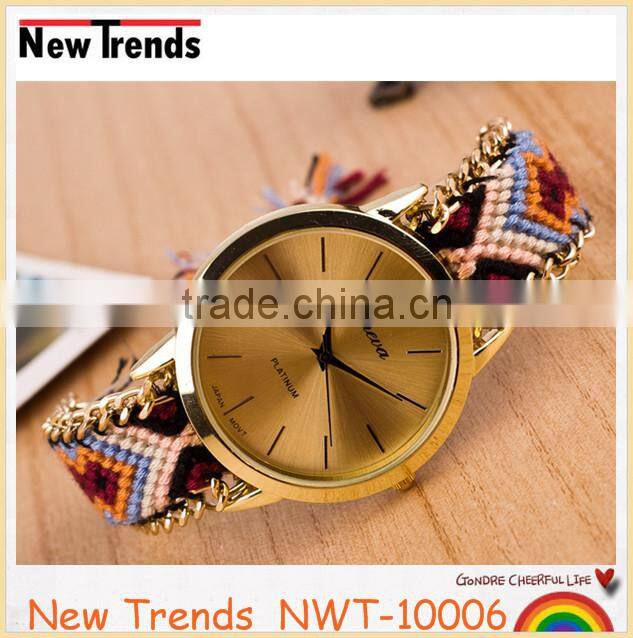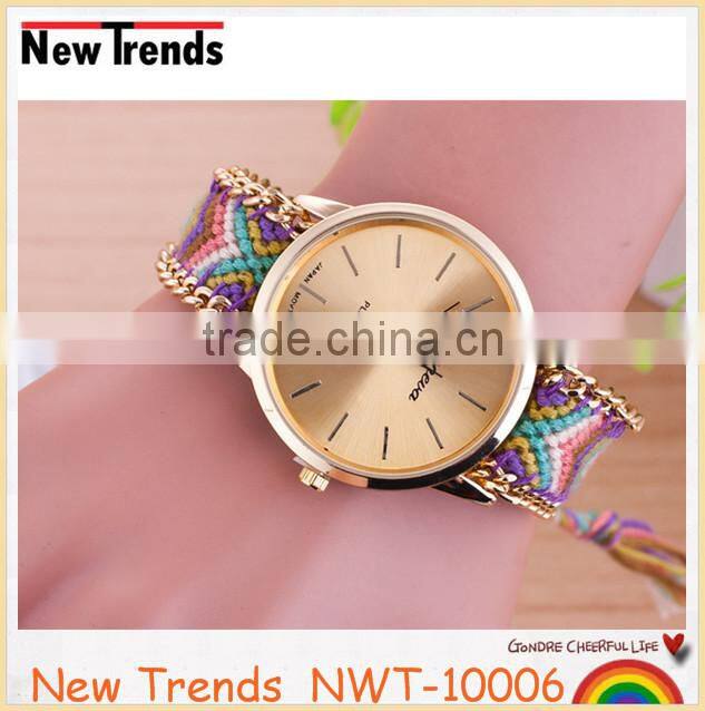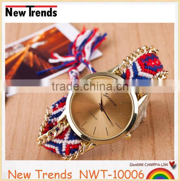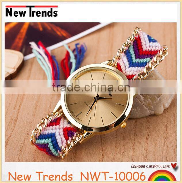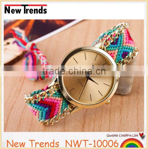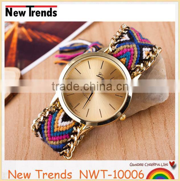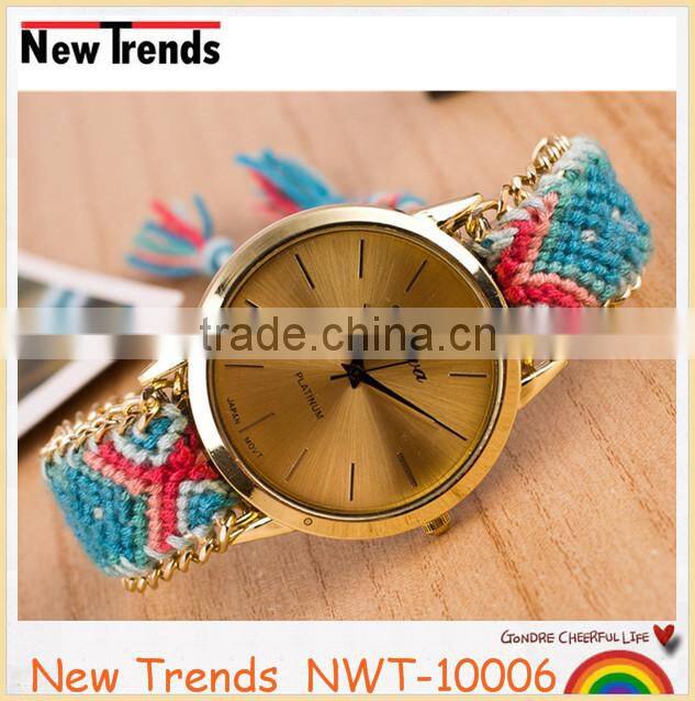 Product | Newest national style multi color woven braid women bracelet watches |