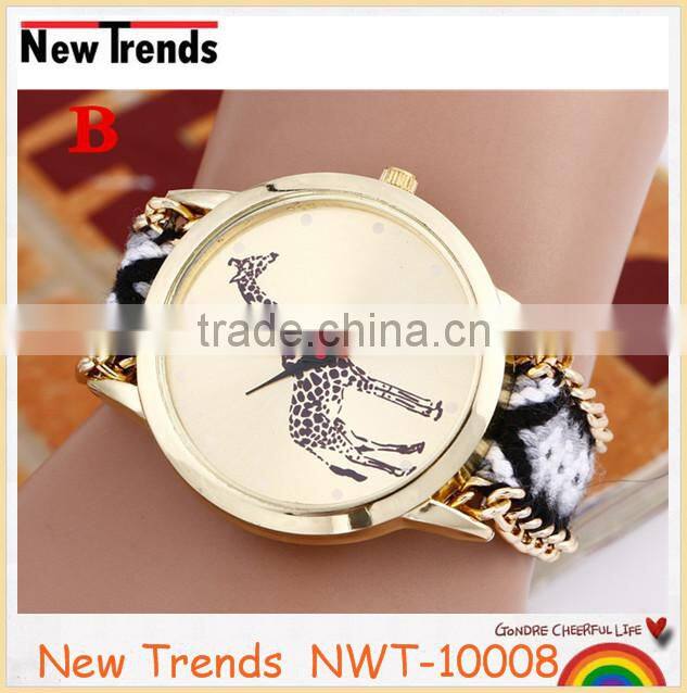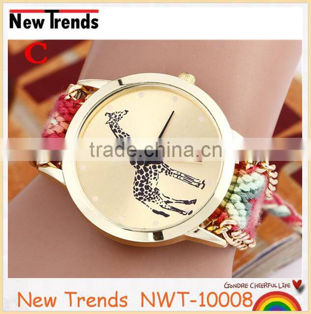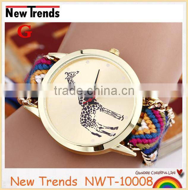 2016 hot new fashion women colorful cord weaved giraffe watches |