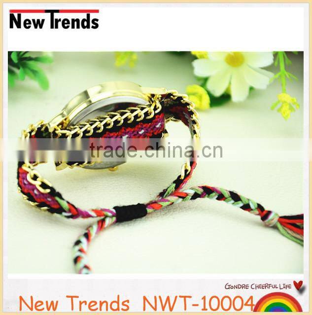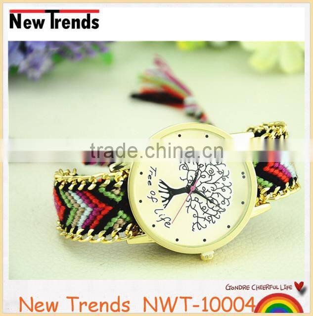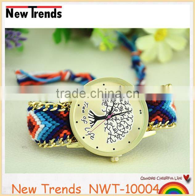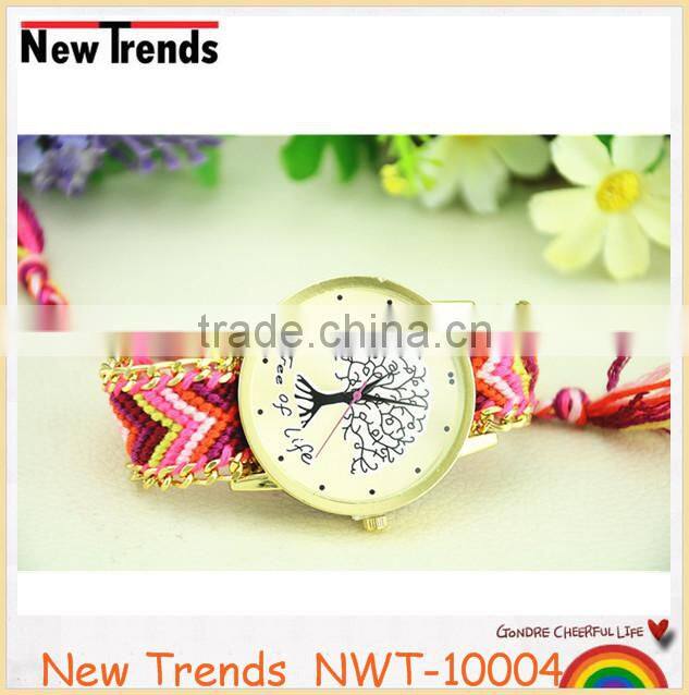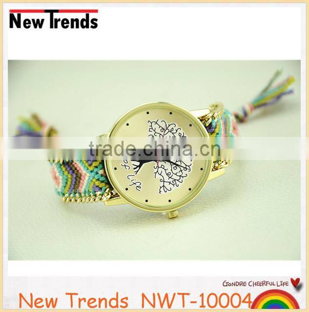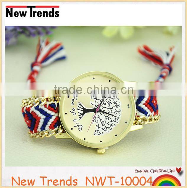 New arival fashion colorful string weaved tree design quartz lady watch |