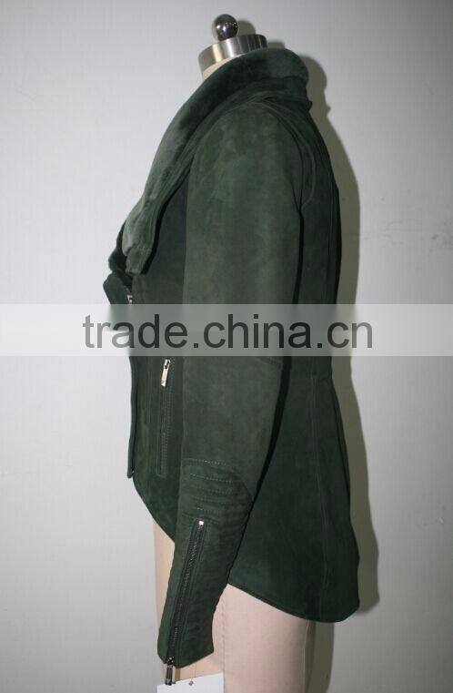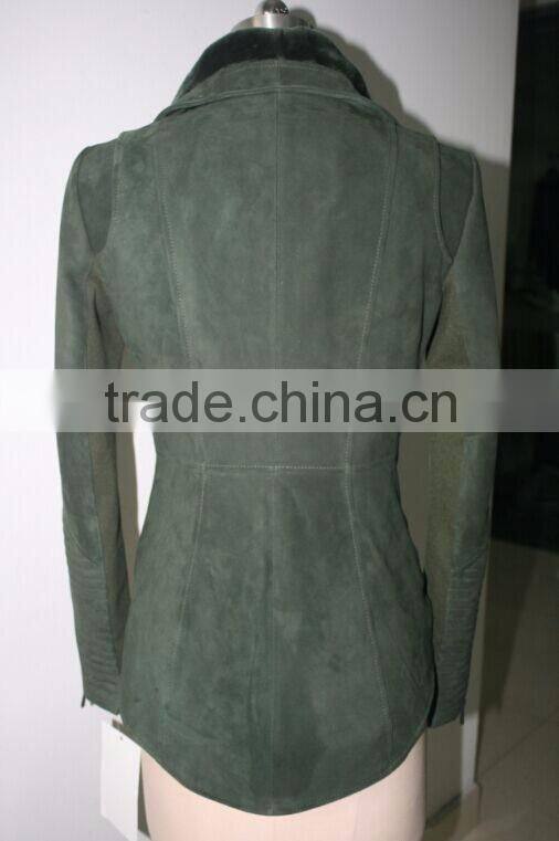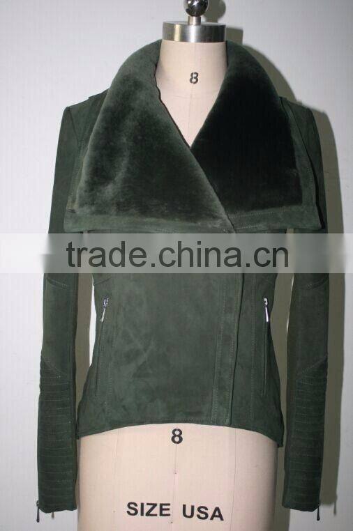 Home > Textile > Leather & Leatheroid > Synthetic Leather > Women Designer Coat Green Faux Fur Jacket
