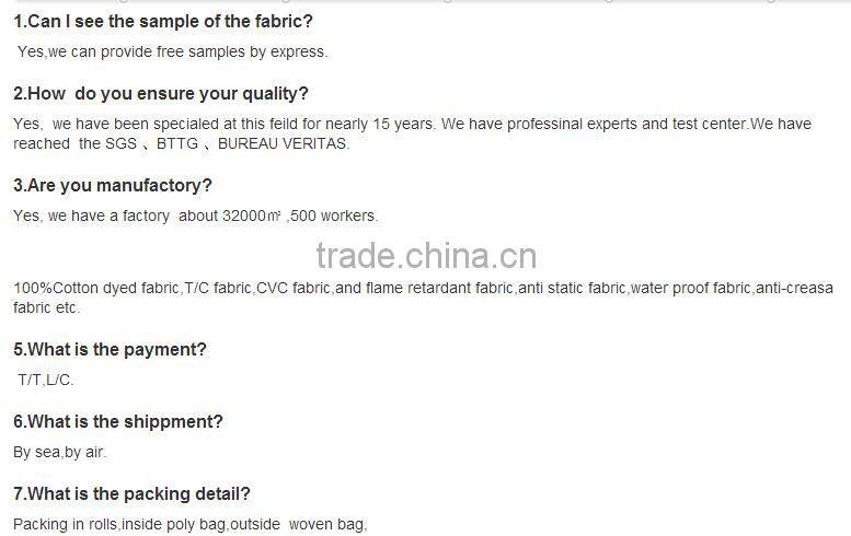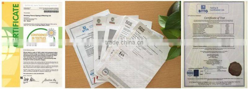 At present, our products have been widely used in the production of protective garment and working clothes in army,petroleum industry, chemical industry, communication industry, machinery industry and civil aviation industry. Moreover, stressing on technical innovation and advancement, we are working for producing quality product and obtaining good reputation .We have been approved as “the trusted company” by city, province and country and have got the certificate of ISO9001 and I/E License. Our products have been sold to EU, USA, Japan, HongKong and Southeast Asia.