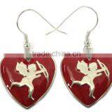 Trendy Metal Silver Hear With Angel Charm Earrings ,decorated With Red Enamel, Customized Colors or LOGO and OEM Desigtn Accept