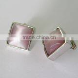 Fashion Square Metal With Pink Opal Earrings Stud With Bowknot Plug, Customized Colors or LOGO and OEM Desigtn Accept