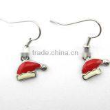 Cute Metal Hat With Red- White Enamel Earring for Christmas, Customized Colors or LOGO and OEM Desigtn Accept