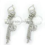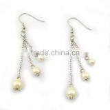 Trendy Metal Silver Link Chain With White Fake Pearl Beads Drop Earrings , Customized Colors or LOGO and OEM Desigtn Accept