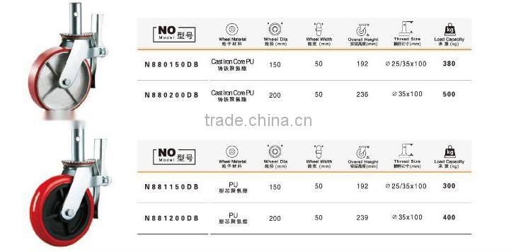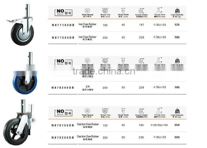 Rubber, PU, PP, PVC scaffolding caster wheel with brake