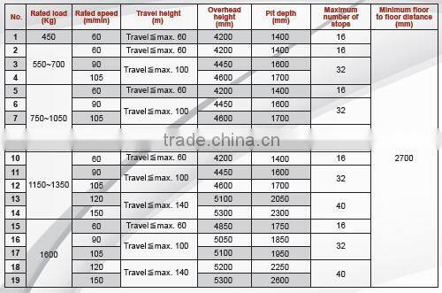 Passenger Elevator and Lift with gearless traction machine specification