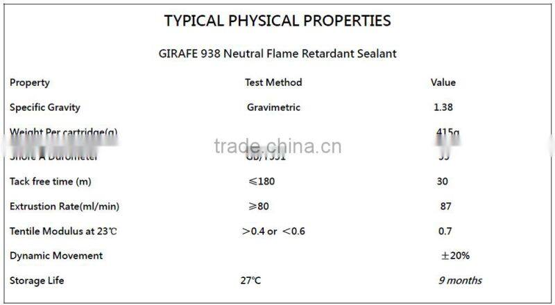 l One component, RTV-1, Neutral Curing at room temperature, flame retardant sealant for building;