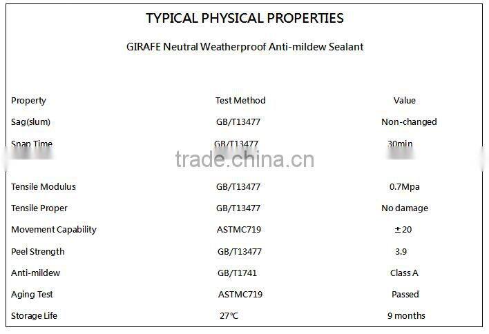 Premium Neutral Weatherproof Antifugus Silicone Sealant