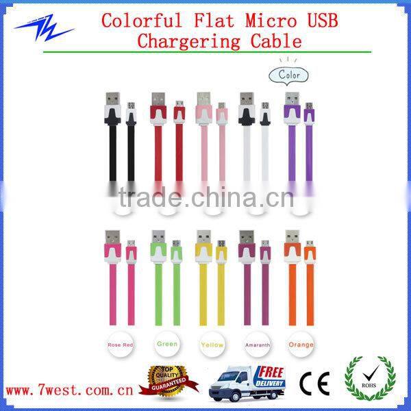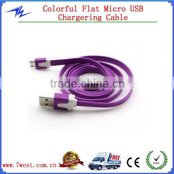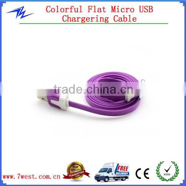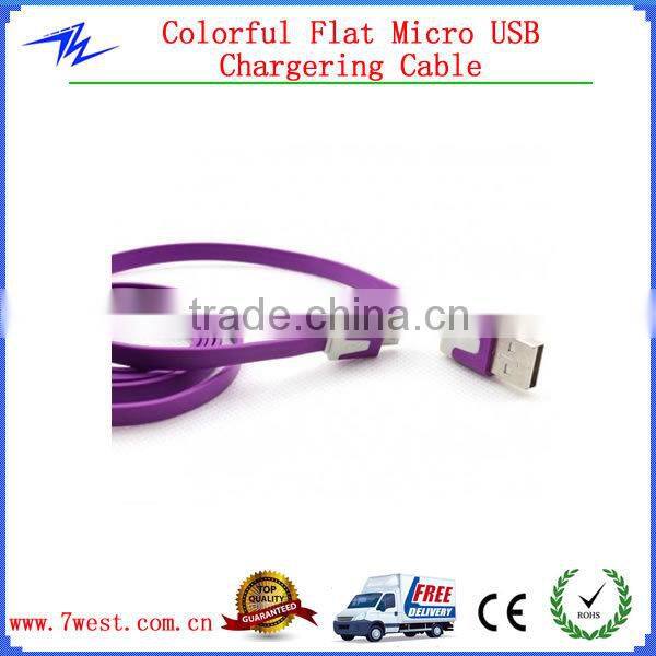 New Arrival Flat Colorful Micro USB Cable Data & Charging Cable for HTC/LG/Nokia/Blackberry/Sony