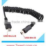 2014 Wholesale Spring Coiled Micro USB B to Mini USB 5 Pin Male Adapter Spiral Cable