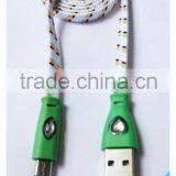 New Fashionable Colorful Flat Noodle Diamond LED Fabric Braided Micro USB Cable for Samsung HTC