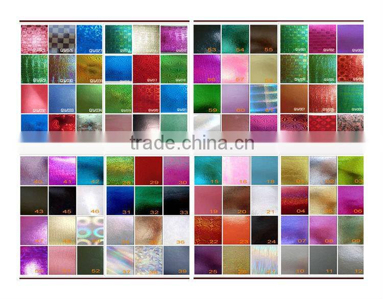 Laser non-woven materials (gold, silver, colorful, laser flower): Color printing peritoneal material, transparent OPP film, PET film, aluminum plating film. With the diverse styles and exquisite workmanship, favored by many customers. Products are sold throughout the country and popular in the world, as a result of the laser non-woven fabric color and luster is bright, quality is high-grade.