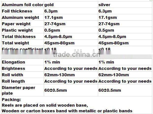 Transfer Aluminum Foil Paper for Cigarette Box Use