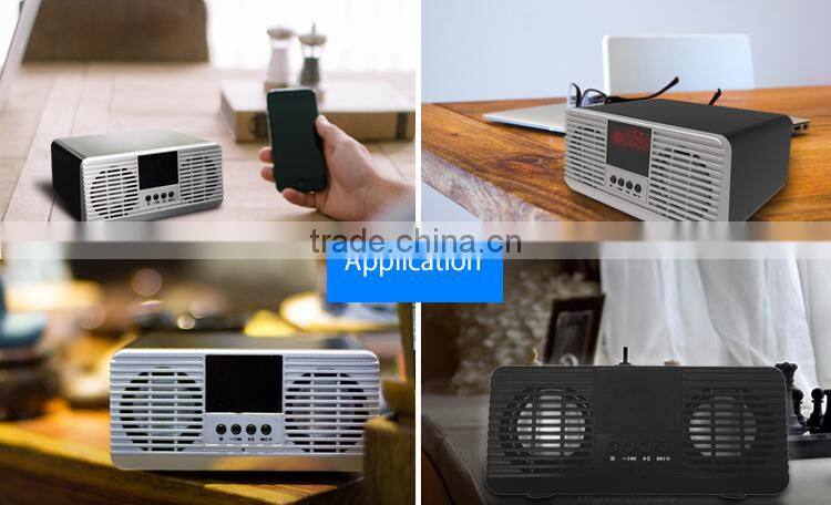 - Support TF card, USB, Line in, FM, Clock/alarm
