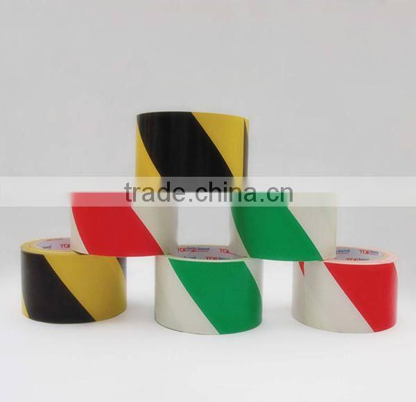 Pvc safety tape warning tape uses bold duo-tone color strips. Highly eye-catching. Widely used as lane marking, section segregating, color-coding, hazard warning labeling.