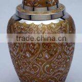 Nickel Overlay With Hand Tooled Design (JAPANI WORK)Brass Cremation Urn
