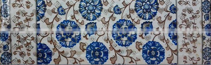 Golden Embossed Pvc Tablecloth in Roll New Design With Blue Flowers