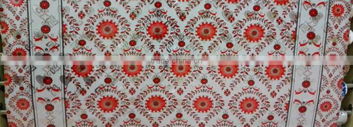 Golden Embossed Pvc Tablecloth in Roll New Design With Red Flowers